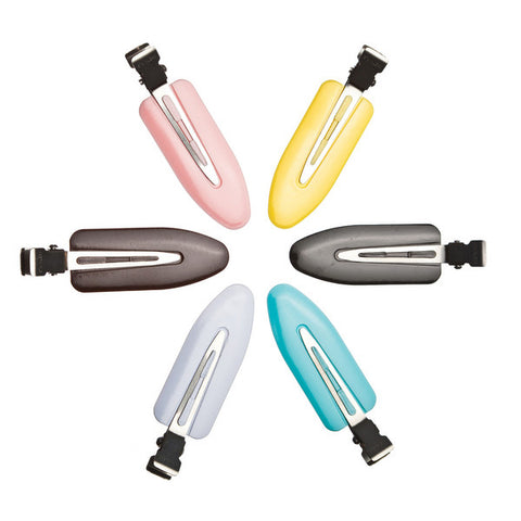 Super Single Curl Clip Pins in an assorted colour pack of 24. The ideal setting clip, giving a secure hold and leaving no imprint. Incredible for finger waving and creating shapes around the face... or for simply holding the hair off the face during makeup application!